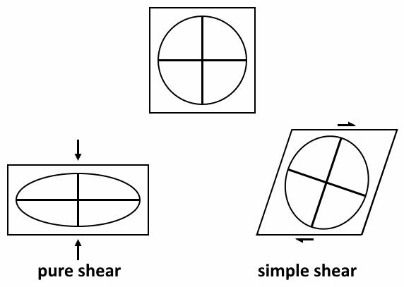 In the case of pure shear, the axes of the FSE do not rotate during deformation, the axes of the FSE stay parallel to any incremental strain ellipsoid. In the case of simple shear however, the axes will rotate. If the both types are combined (most often the case), one uses the term general shear.