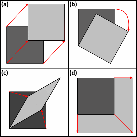 Stress acting on a rock unit results in strain. If strain actually occurs (meaning rock is deformed), three types of strain must be distinguished: Translation, Rotation, Distortion, Dilation. You can see the different types of strain in Fig. 2.
