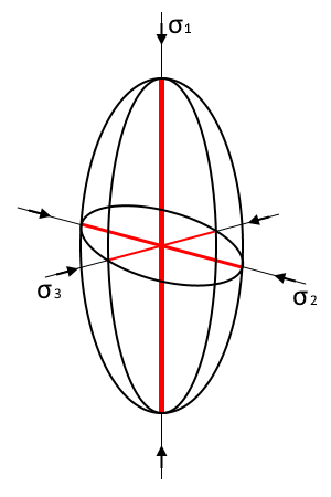 As a result, if we visualise stress as vectors, σ1 will always be the longest vector. In most cases however geologists don’t visualise vectors in a coordinate system but instead view stress in a stress ellipsoid (see Fig. 1).
